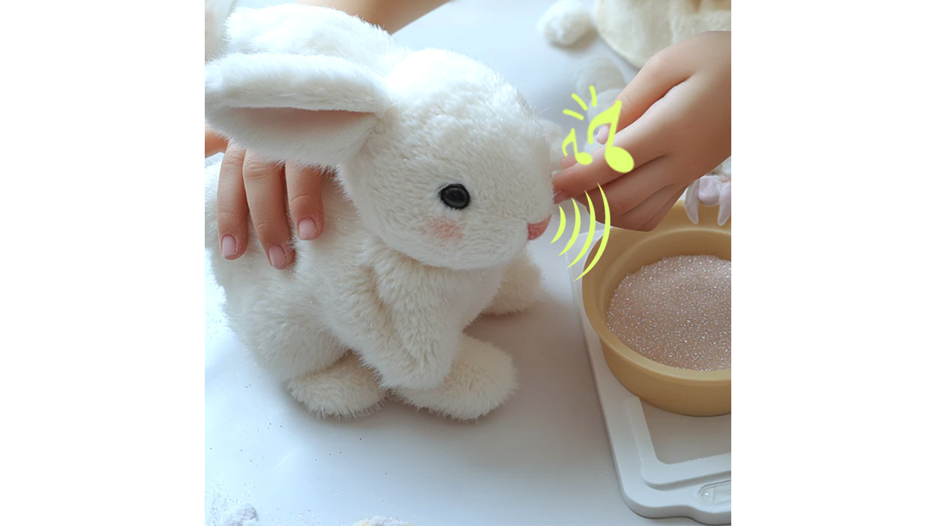Inside the bunny, whisper-quiet, highly precise micro-servomotors simulate even the finest movements like hopping, nose sniffing, and ear wiggling – completely undetectable to children. - Ultra-Sensitive Touch Sensors
