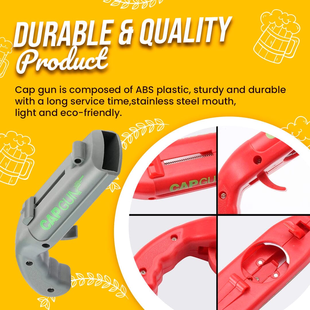 - Unique Design - it's the best of both worlds—features a real cap-looking gun that shoots caps at beer bottles when you pull the trigger, and it's also a bottle opener!